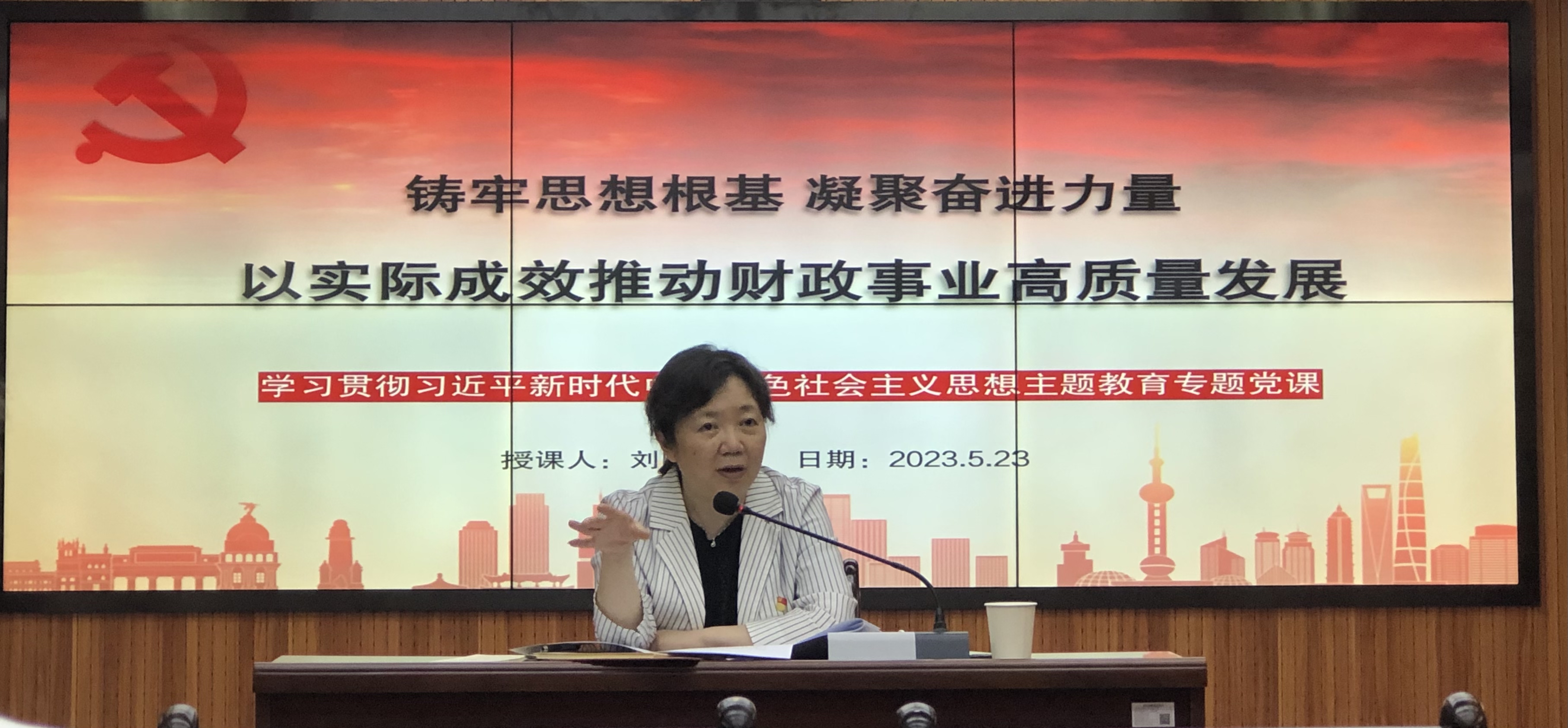 为深入开展主题教育,引导党员干部以学铸魂、以学增智、以学正风、以学促干,5月23日,局党组成员、总会计师刘晓红同志以《铸牢思想根基 凝聚奋进力量 以实际成效推动财政事业高质量发展》为题,到所在的国库处(收付中心)党支部为全体党员讲授了专题党课。