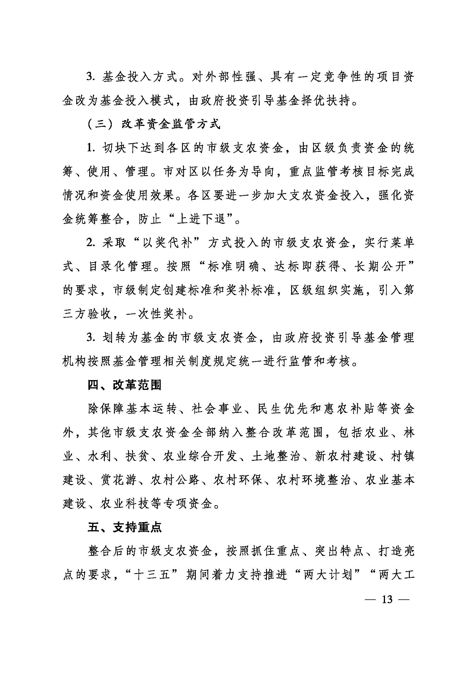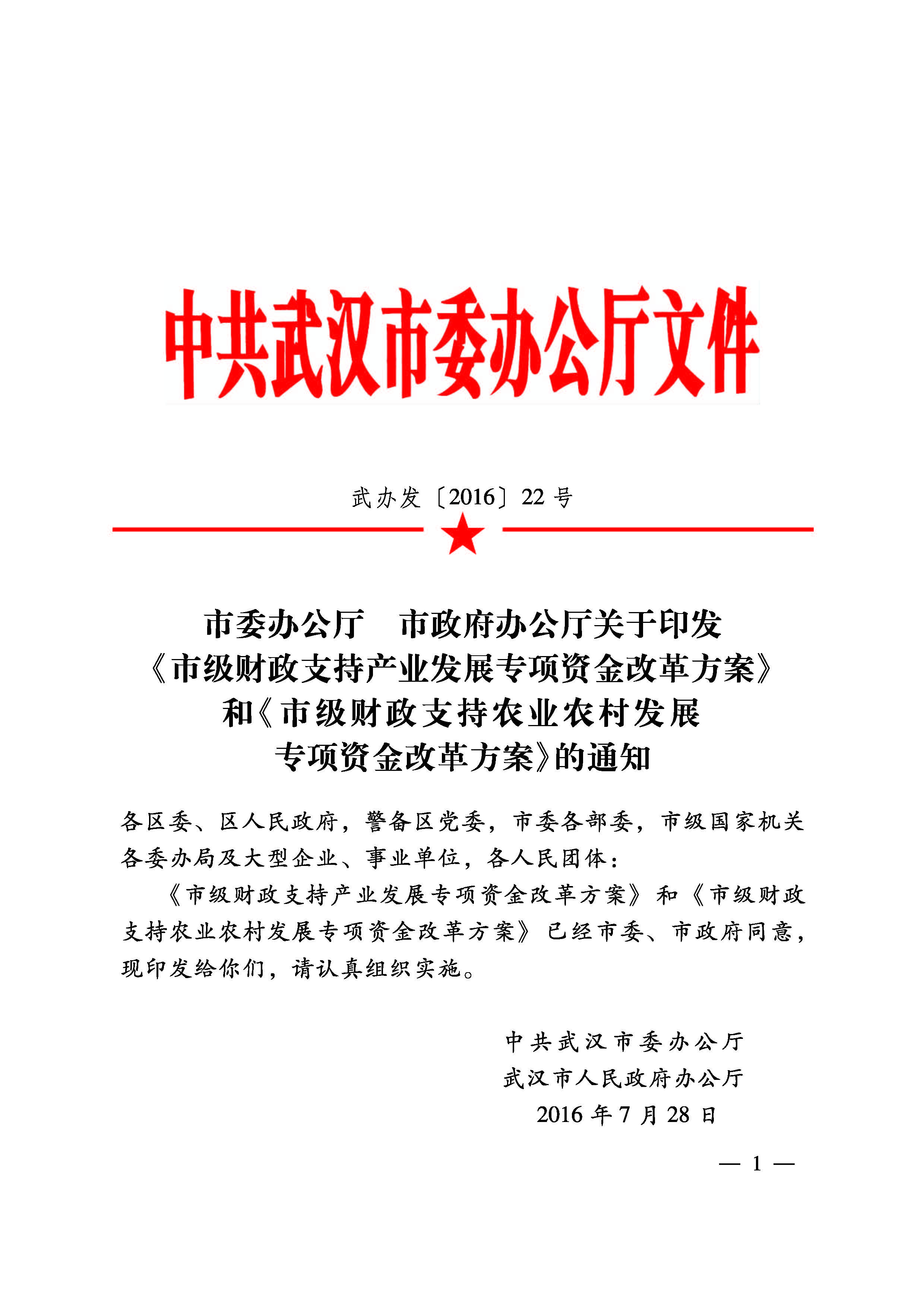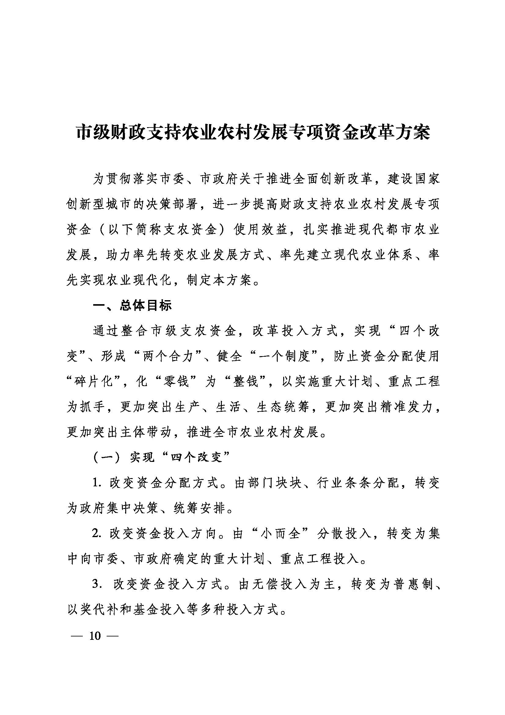 关于印发《市级财政支持产业发展专项资金改革方案》和《市级财政支持农业农村发展专项资金改革方案》的通知