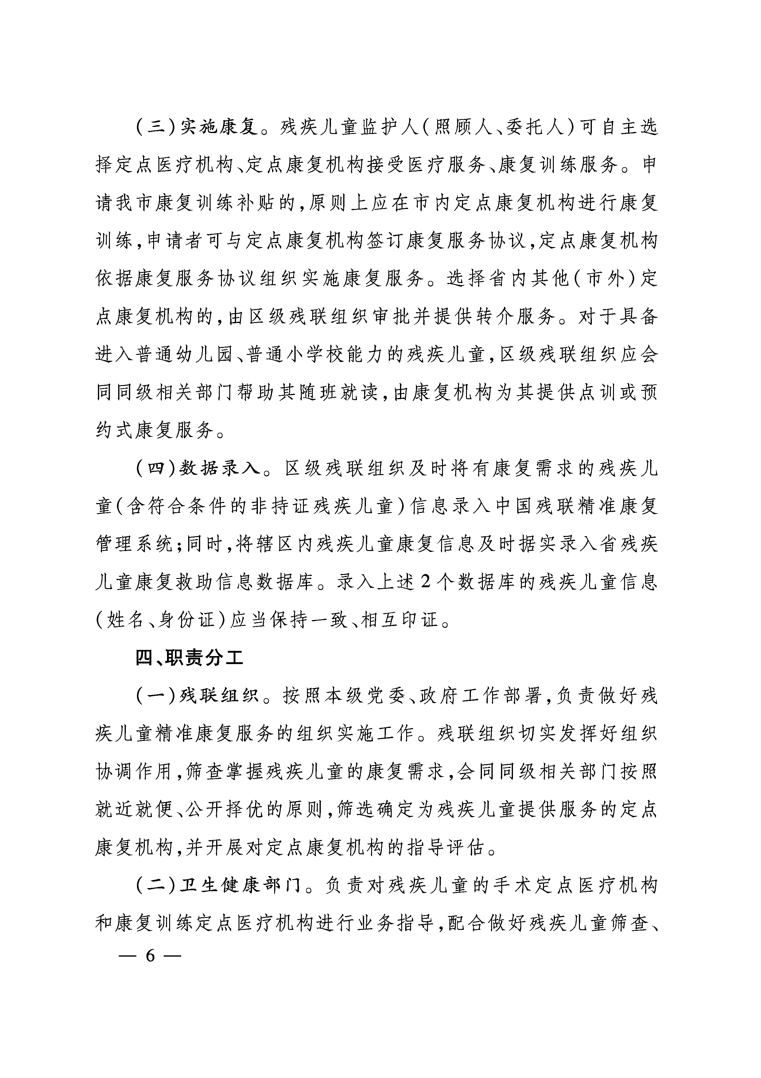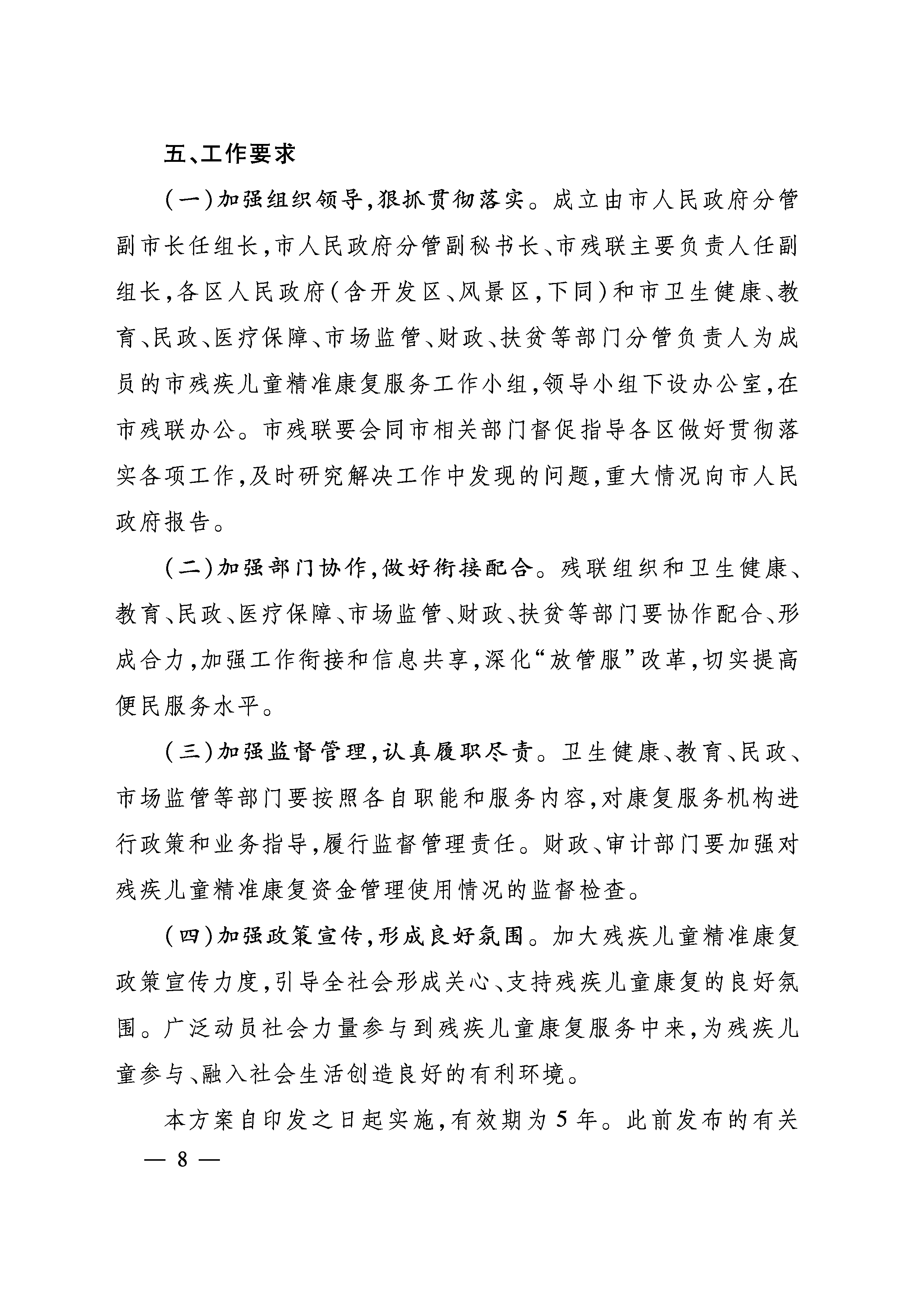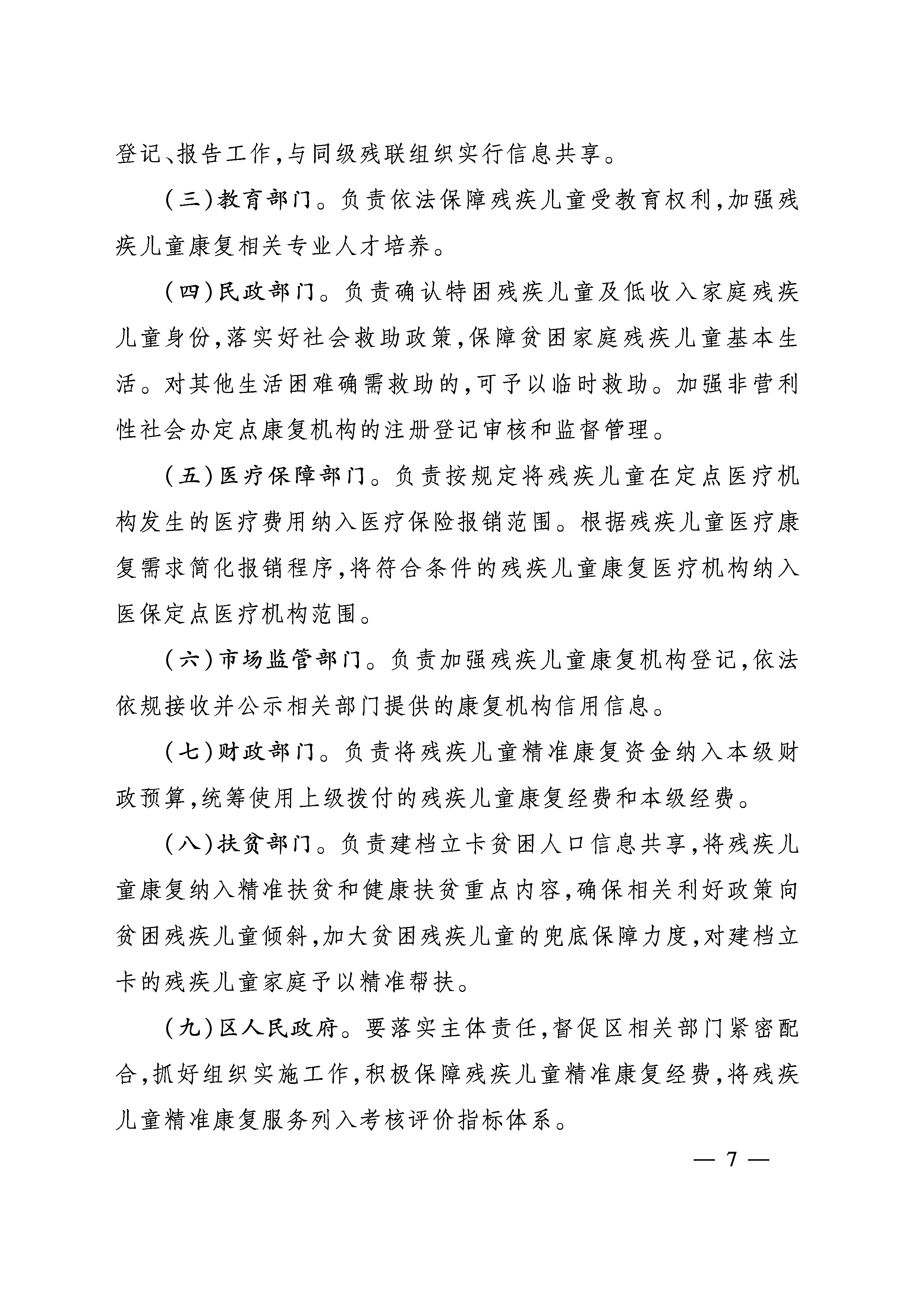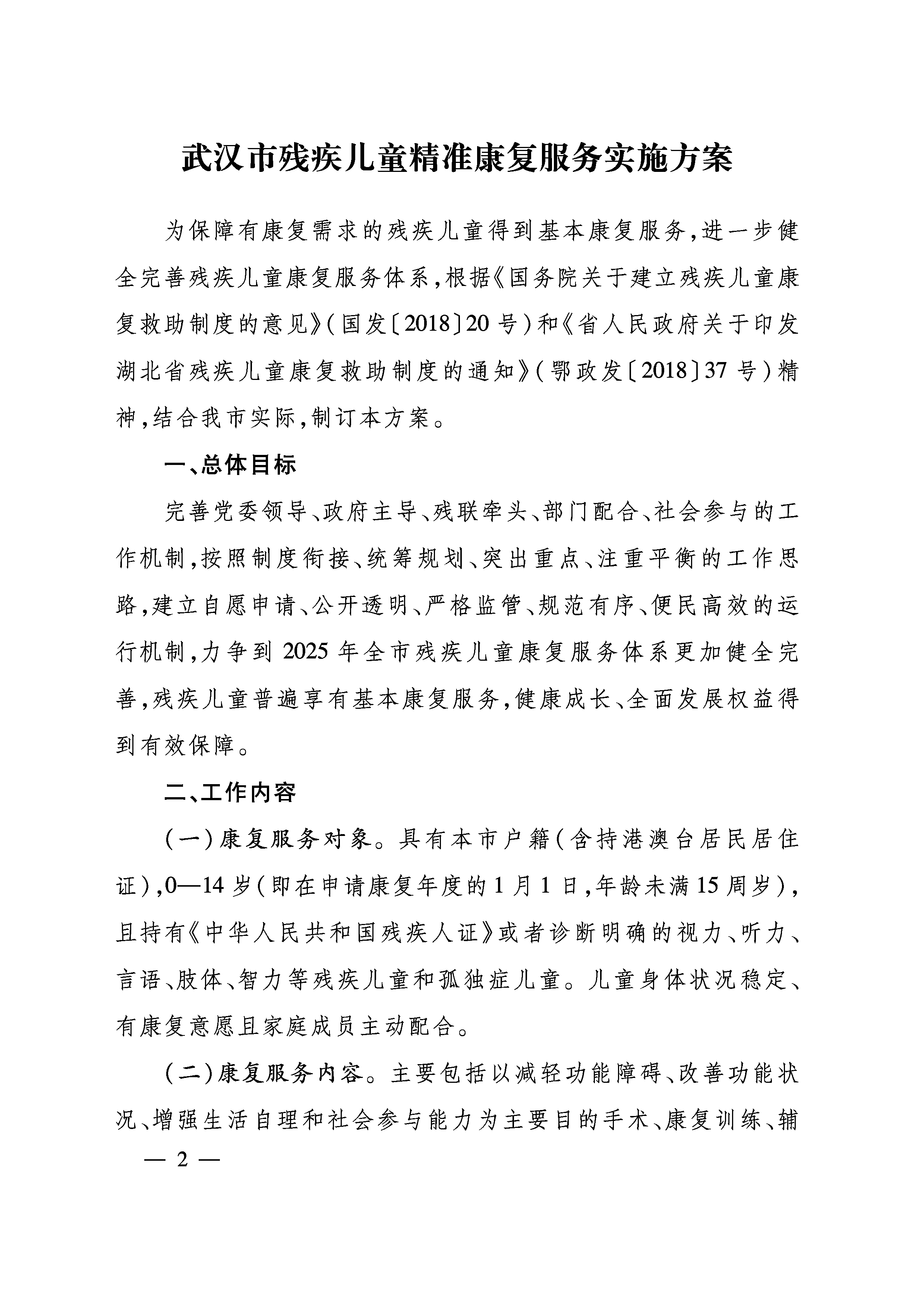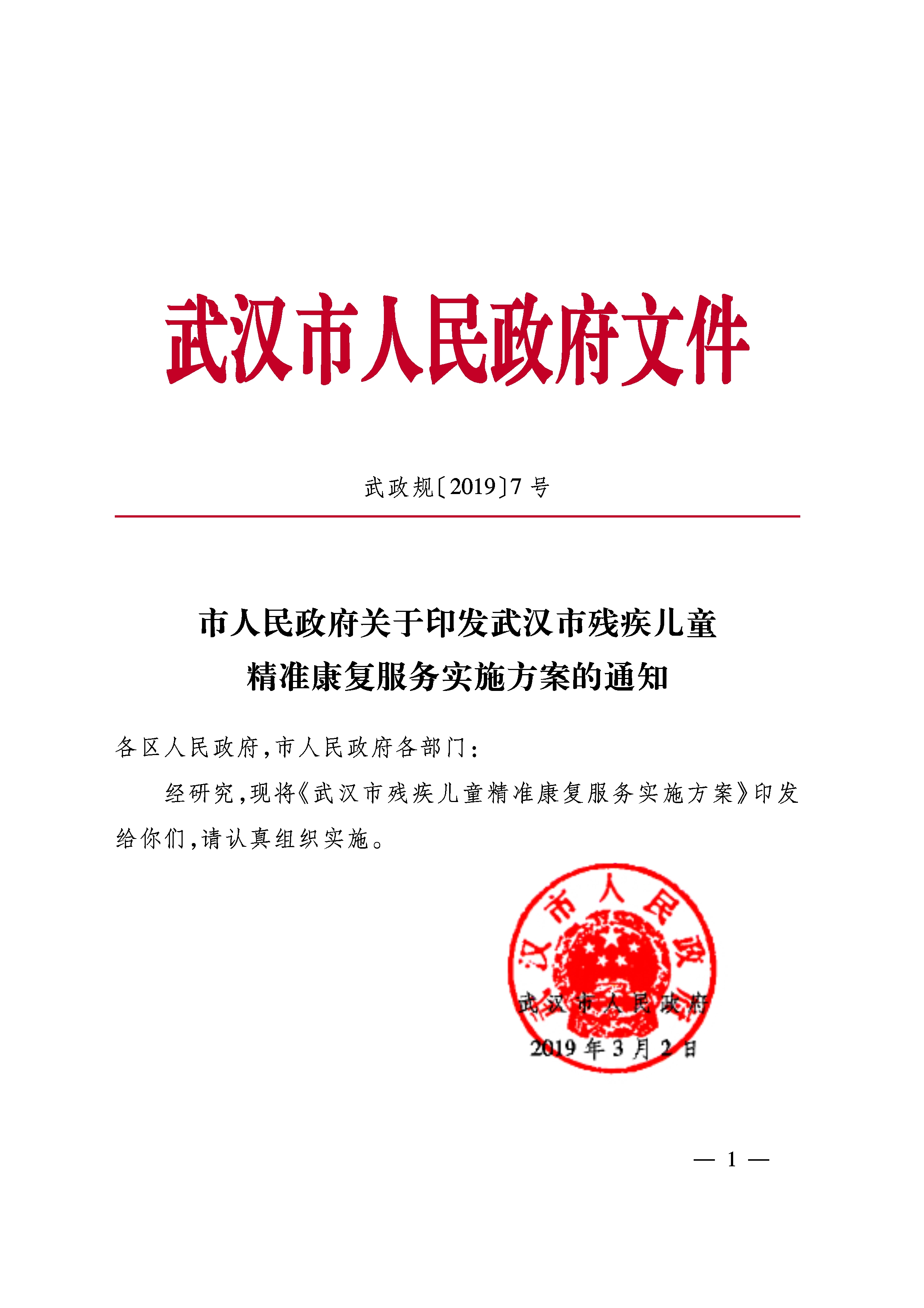 武政规〔2019〕7号 市人民政府关于印发武汉市残疾儿童精准康复服务实施方案的通知