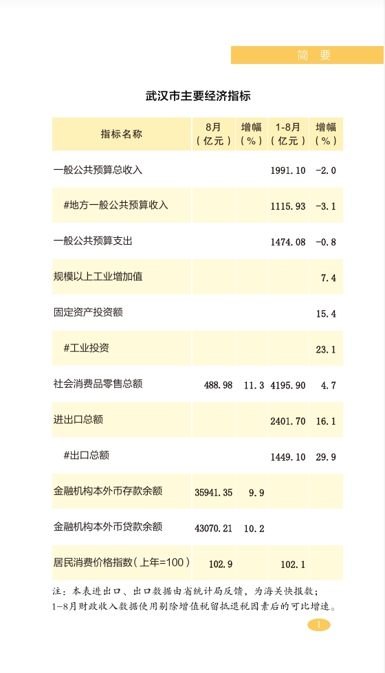 2022年1-8月武汉市国民经济主要指标