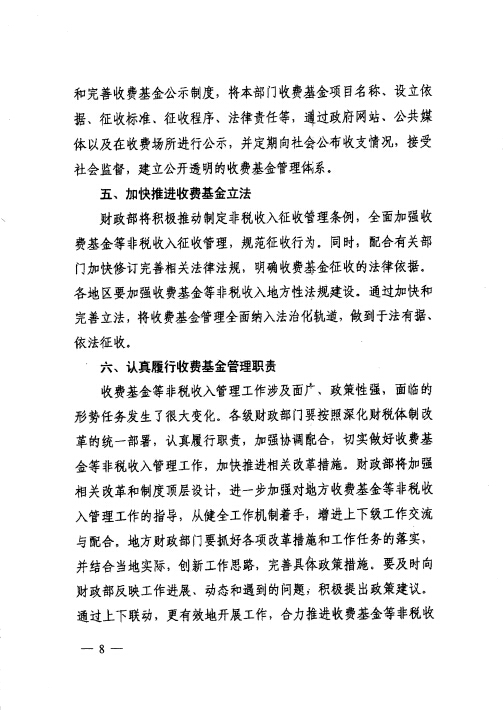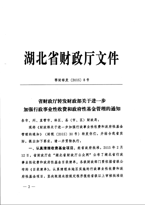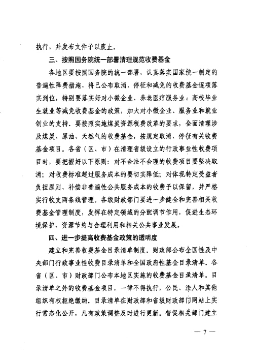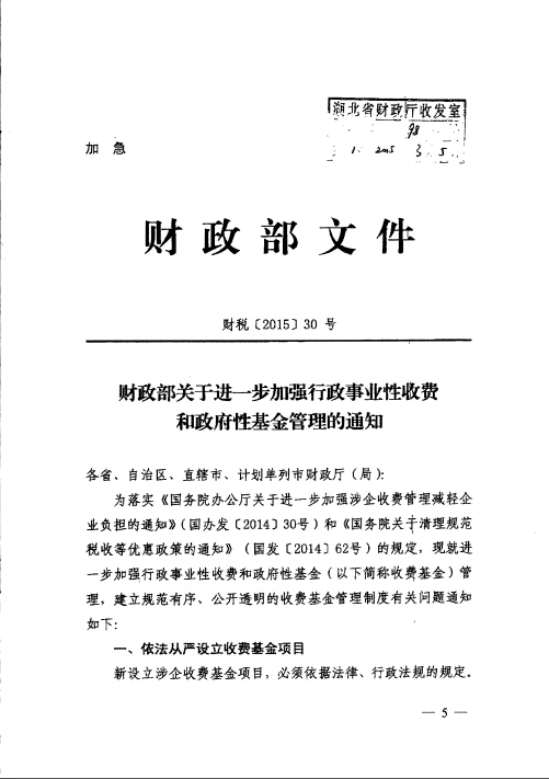 关于进一步加强行政事业性收费和政府性基金管理的通知