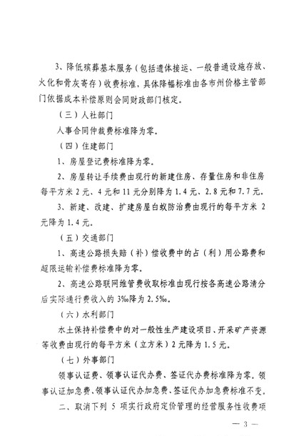 关于降低部分行政事业性收费标准取消部分政府定价经营服务性收费项目的通知