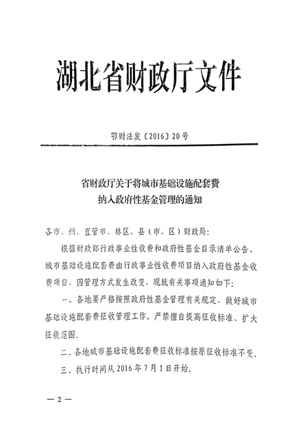 关于将城市基础设施配套费纳入政府性基金管理的通知