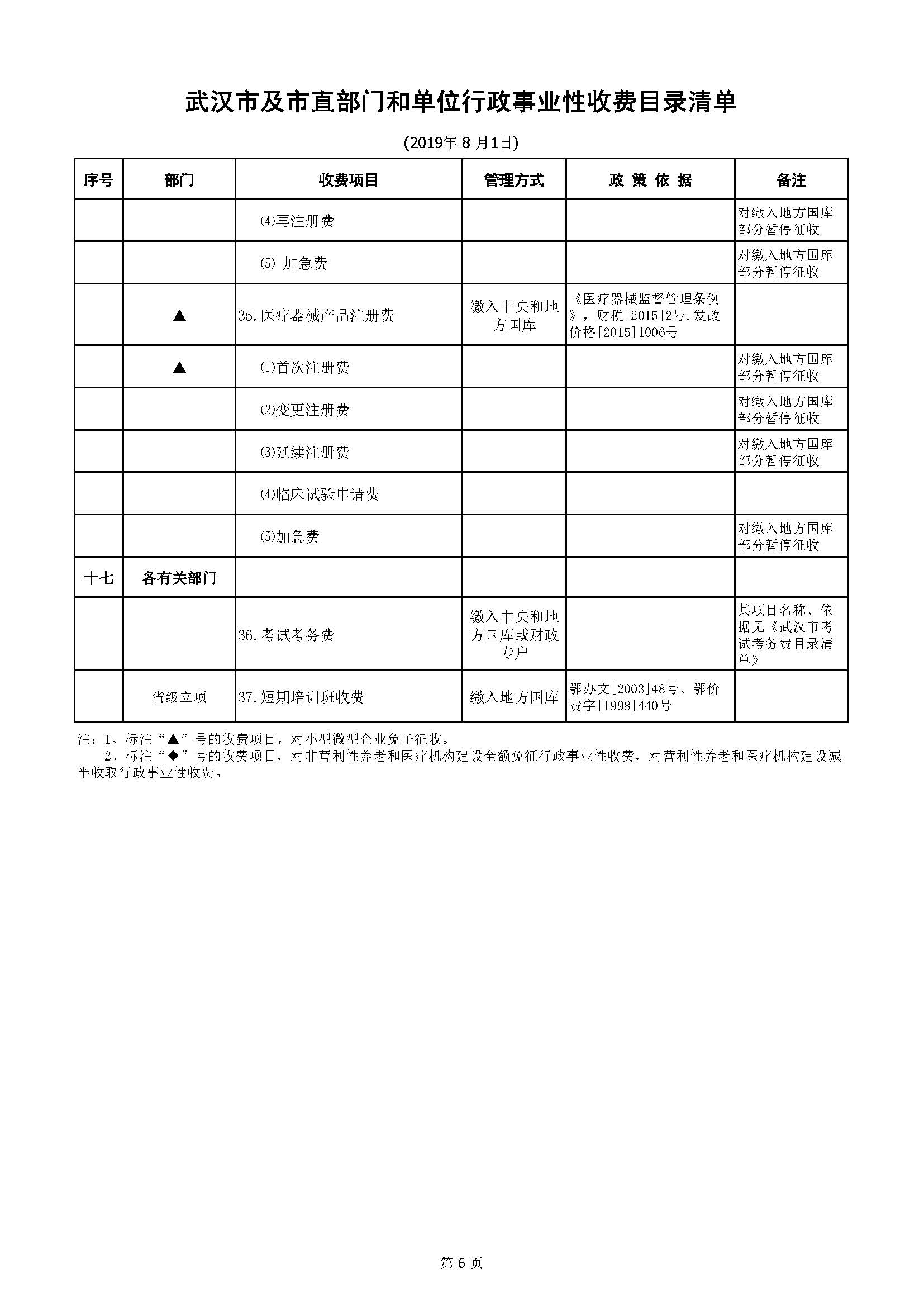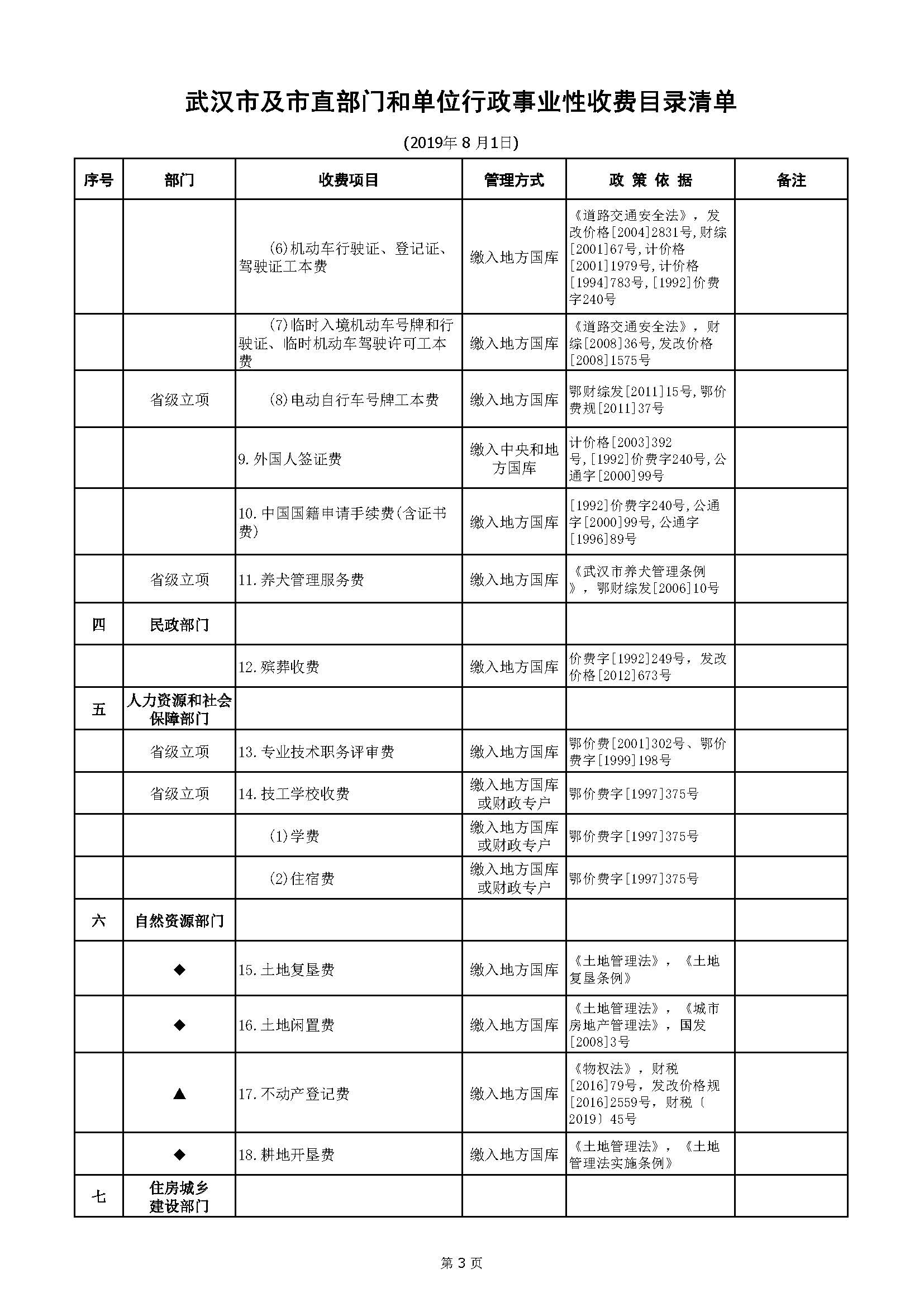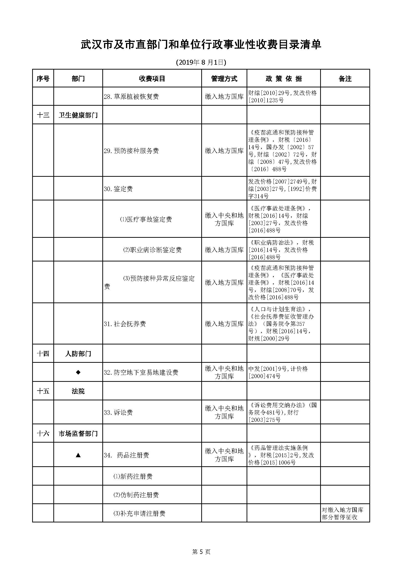 武汉市及市直部门和单位行政事业性收费目录清单(2019年8月1日)
